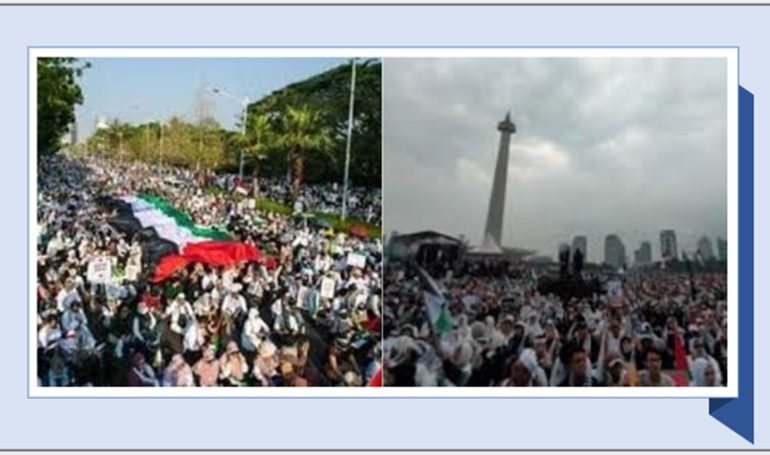 The massive interfaith gathering in the Monas, Jakarta that took place to express solidarity with Palestine this morning 5th of November 2023.